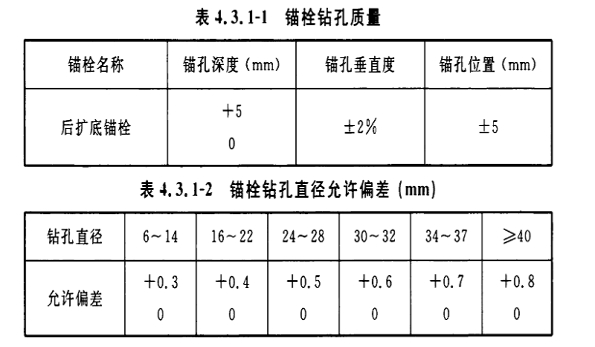 3. 錨栓鉆孔應(yīng)符合表4.3.1-1和4.3.1-2
